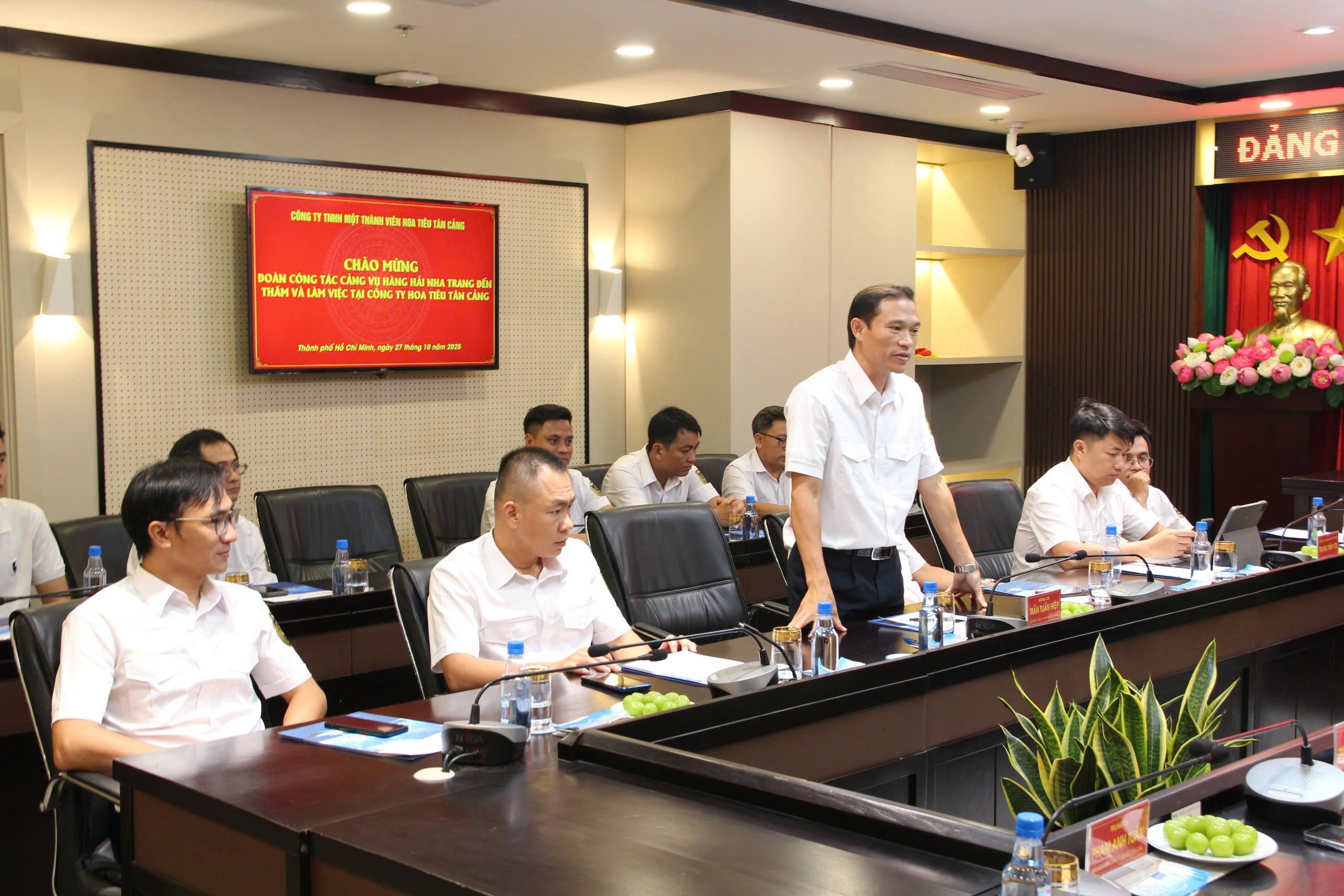 Phát biểu tại buổi làm việc, đồng chí Trần Tuấn Hiệp, Giám đốc Cảng vụ Hàng hải Nha Trang ghi nhận và đánh giá cao những kết quả ấn tượng mà Công ty Hoa tiêu Tân Cảng đạt được trong thời gian qua, đồng thời biểu dương tinh thần trách nhiệm, tính chuyên nghiệp và sự phối hợp hiệu quả của đội ngũ hoa tiêu Công ty trong công tác điều động, dẫn dắt tàu thuyền. Đồng chí cũng nhấn mạnh, chuyến tham quan và làm việc lần này là dịp để Cảng vụ Hàng hải Nha Trang và Công ty Hoa tiêu Tân Cảng chia sẻ kinh nghiệm trong công tác quản lý, điều hành và tổ chức hoạt động hoa tiêu, đặc biệt là trao đổi, thống nhất các giải pháp nâng cao hiệu quả phối hợp trong xây dựng và phê duyệt kế hoạch điều động tàu thuyền, góp phần đảm bảo an toàn, an ninh hàng hải và phòng ngừa ô nhiễm môi trường.